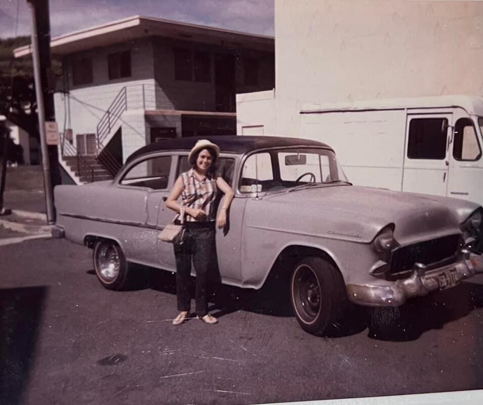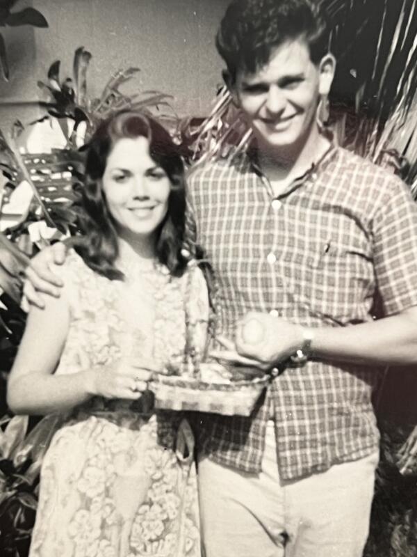 I met my boyfriend Bob at church when I was 16 years old. He was in the Navy. He was working on a guided missile destroyer. He worked as a cook and later did laundry for the crew. He went on four Westpac cruises to Vietnam while we got to know each. Each deployment was at least six months. There was no email. We wrote letters and had to number them so we could read them in the right order. Letters were dropped off by helicopters and picked up sporadically. We dated for four years. Bob got his high school GED certificate while in the Navy. We got married over the 4th of July weekend in 1968 and spent one night at the Halekaulani Hotel on the beach at Waikiki. I made my own simple white dress. My dad was not happy. He wanted me to finish college first. We paid for own wedding and reception at the First Baptist Church of Honolulu. I went back to college for last two years. Our first apartment was a studio. Every night we converted the sofa into a bed. It cost $80 a month. It was on South King Street. After my graduation from the University of Hawaii in May 1970, we moved to California to be near my in-laws. My father-in-law was on crutches. I was told it was from a train accident.